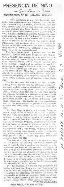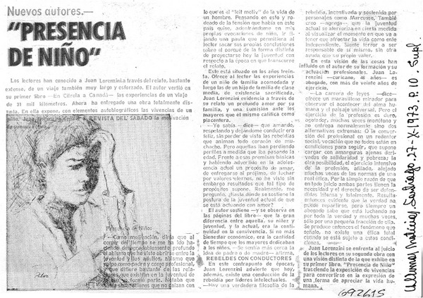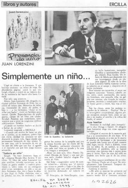 Juan Lorenzini, Presencia de niño [artículo] Hernán del Solar.