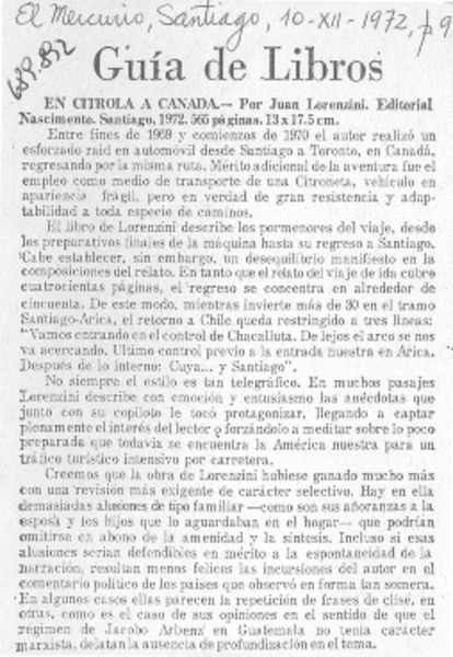 Autores chilenos - En citrola a Canadá - Lorenzini Correa, Juan Angel