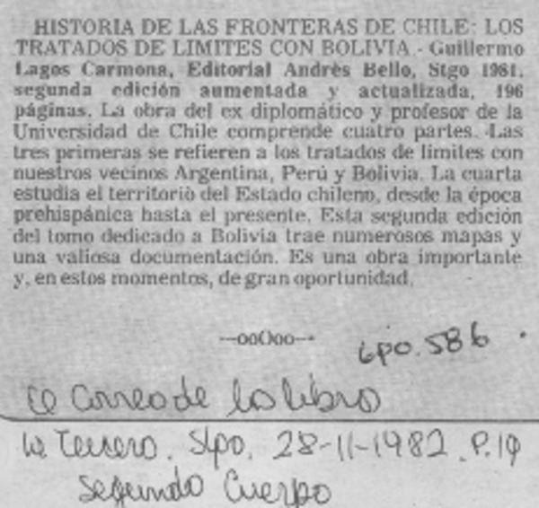 Historia de las fronteras de Chile", libro más leído. [artículo]