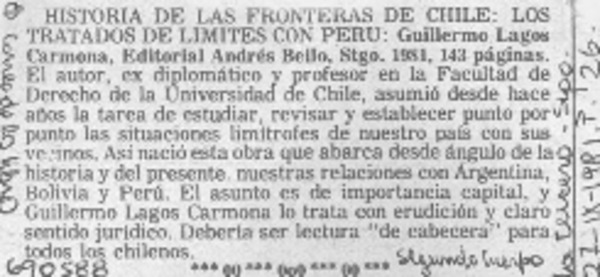 Autores chilenos - Lagos Carmona, Guillermo - Historia de las fronteras de Chile