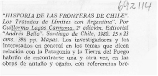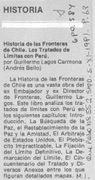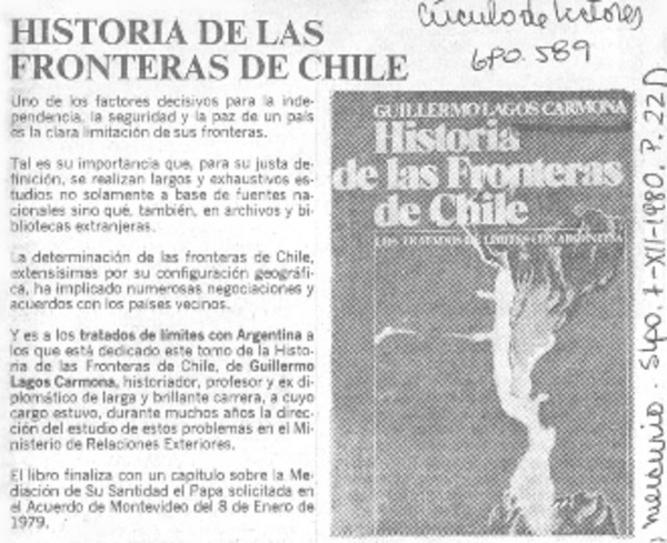 Historia de las fronteras de Chile" [artículo] Pickwick.