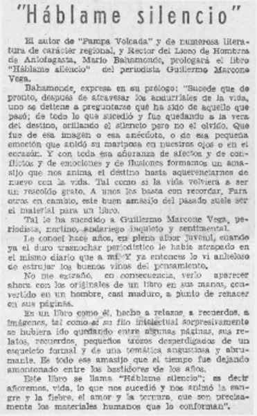 Autores chilenos - Marcone Vega, Guillermo - Háblame silencio