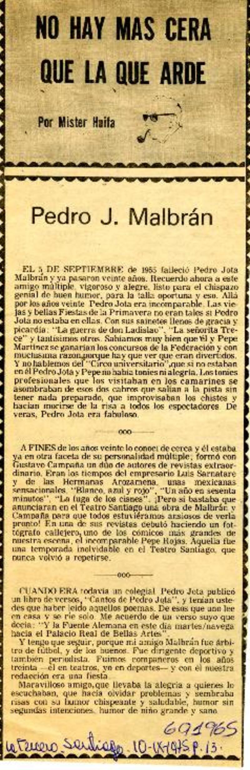 Pedro J. Malbrán [artículo] Mister Huifa.