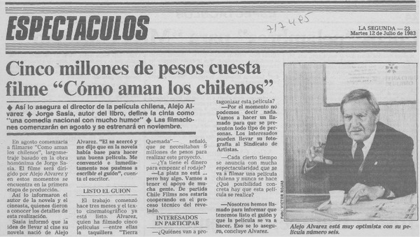 Cinco millones de pesos cuesta filme "Cómo aman los chilenos" : [entrevista] [artículo]