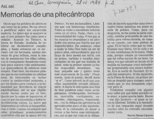Memorias de una pitecántropa [artículo] Norma Sierpe Cáceres.