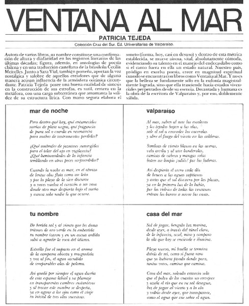 Autoras chilenas - Tejeda, Patricia - Ventana al mar
