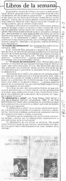 Autores chilenos - Roa, Armando - Peláez, Paula - Mützel de Berner, Edith - Medina, Ana María - Adolescente y usted - Mundo del adolescente