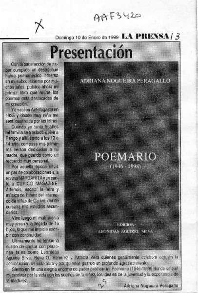 NOGUEIRA PERAGALLO, ADRIANA - POEMARIO