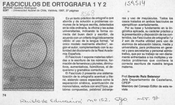 Fascículos de ortografía 1 y 2 [artículo] Gerardo Ruiz Betancur.