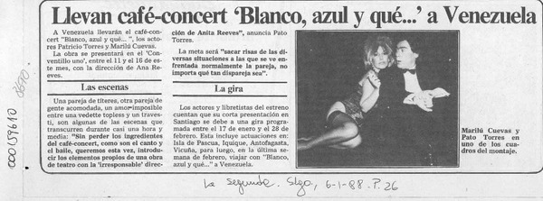 Llevan café-concert "Blanco, azul y qué -- " a Venezuela [artículo].
