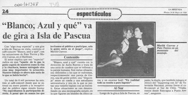 "Blanco, azul y qué" va de gira a Isla de Pascua [artículo].