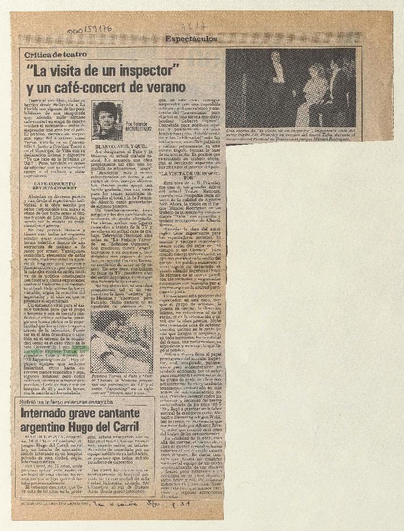 "La visita de un inspector" y un café-concert de verano [artículo] Yolanda Montecinos.