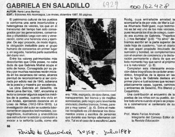 Gabriela en Saladillo [artículo] Mario Farías Andrade.