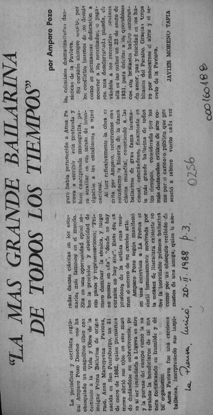 Anna Pavlova, ideal e inspiración del ballet [artículo] Luis Flores Sierra.