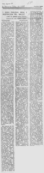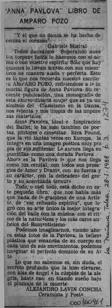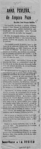 "Anna Pavlova" libro de Amparo Pozo [artículo] Alejandro Lavín Concha.