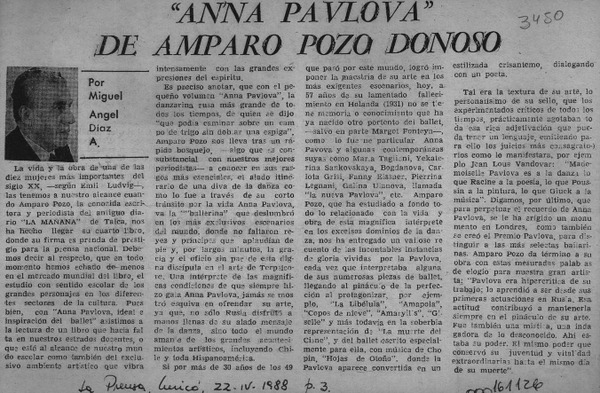 "Anna Pavlova" de Amparo Pozo Donoso [artículo] Miguel Angel Díaz A.