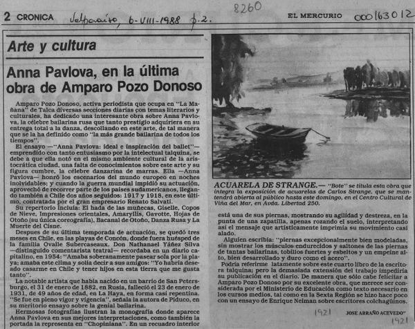 Anna Pavlova, en la última obra de Amparo Pozo Donoso [artículo] José Arraño Acevedo.