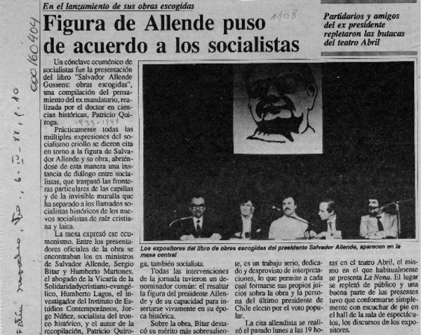 Figura de Allende puso de acuerdo a los socialistas [artículo].