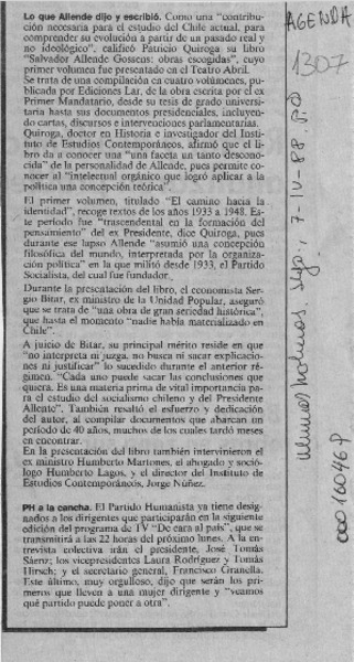 QUIROGA, PATRICIO - SALVADOR ALLENDE GOSSENS, OBRAS ESCOGIDAS 1933-1948
