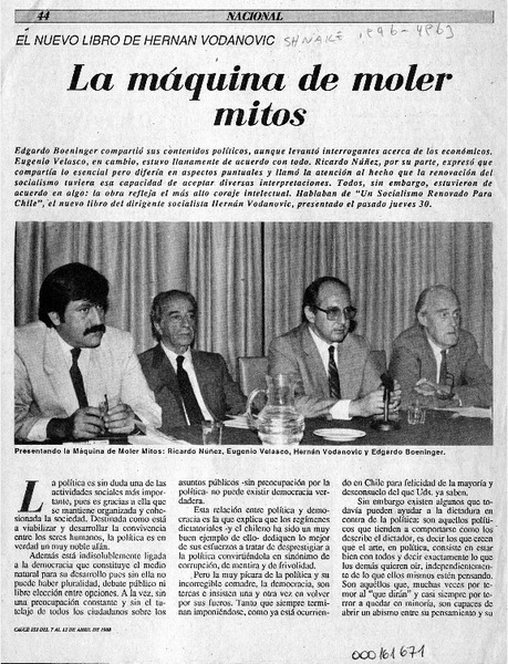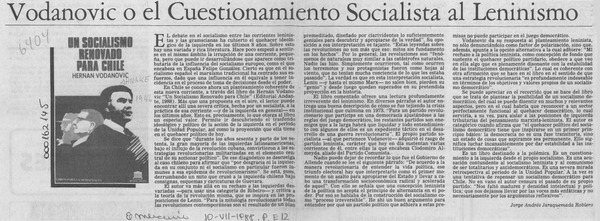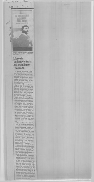 Libro de Vodanovic trata del socialismo renovado [artículo].