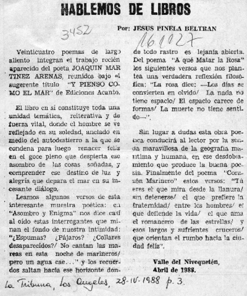 Hablemos de libros [artículo] Jesús Pinela Beltrán.