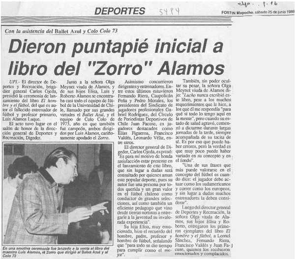 Dieron puntapié inicial a libro del "Zorro" Alamos [artículo].