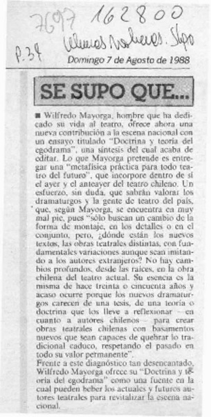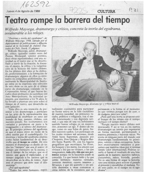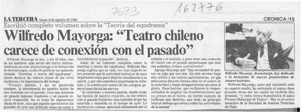 Wilfredo Mayorga, "Teatro chileno carece de conexión con el pasado" [artículo].