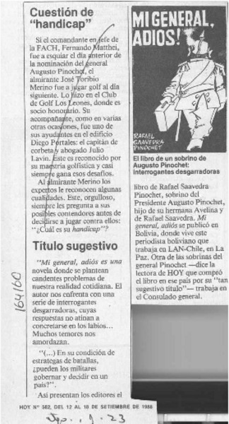 Rafael Saavedra Pinochet se refiere a artículo sobre "Mi general, adiós" [artículo] Rafael Saavedra Pinochet.