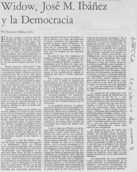 Democracia e ideología democrática [artículo] Gonzalo Ibáñez S.M.