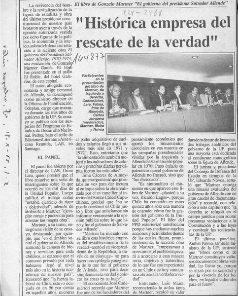 "Histórica empresa del rescate de la verdad"  [artículo].