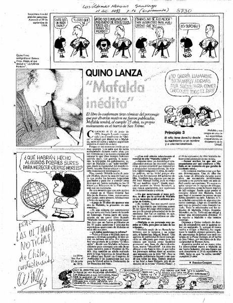 La "Mafalda" nació a los "conchazos" [artículo] Marco Antonio Moreno.