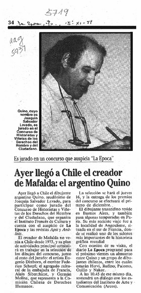 Ayer llegó a Chile el creador de Mafalda, el argentino Quino [artículo].