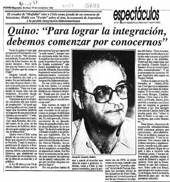 Quino, "Para lograr la integración, debemos comenzar por conocernos" [artículo].