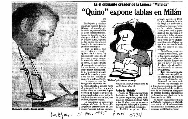 Quino" expone tablas en Milán. [artículo]