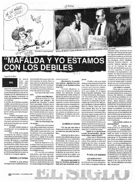 Mafalda y yo estamos con los débiles [artículo] Agustín López.
