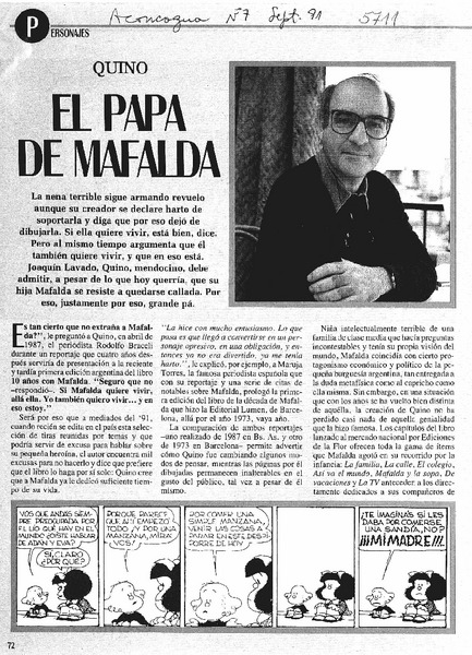 Quino, el padre de Mafalda, se confiesa [artículo] Leila Guerriero.