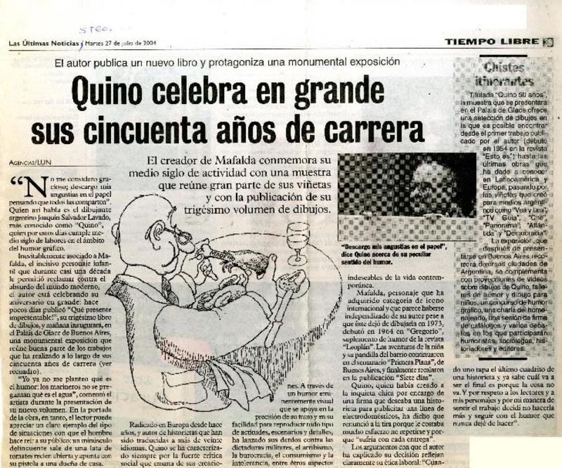 La Vida, los diarios y la Biblia inspiran a Quino [artículo].