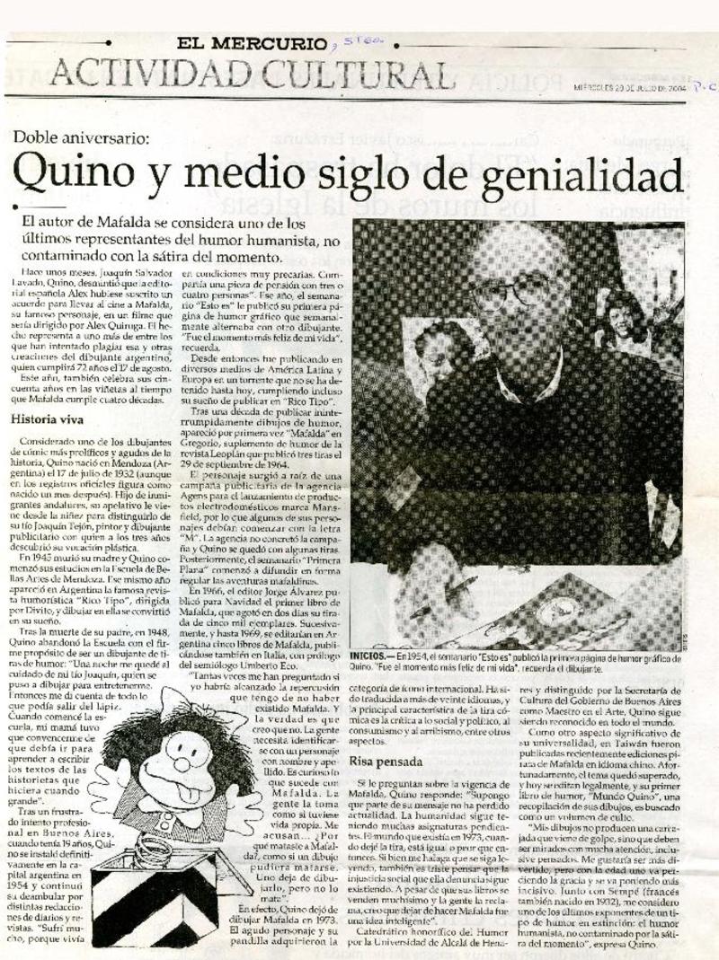 Quino y medio siglo de genialidad. [artículo]