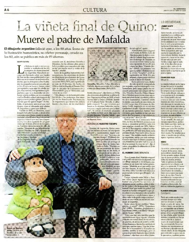 La viñeta final de Quino : Muere el padre de Mafalda [artículo].