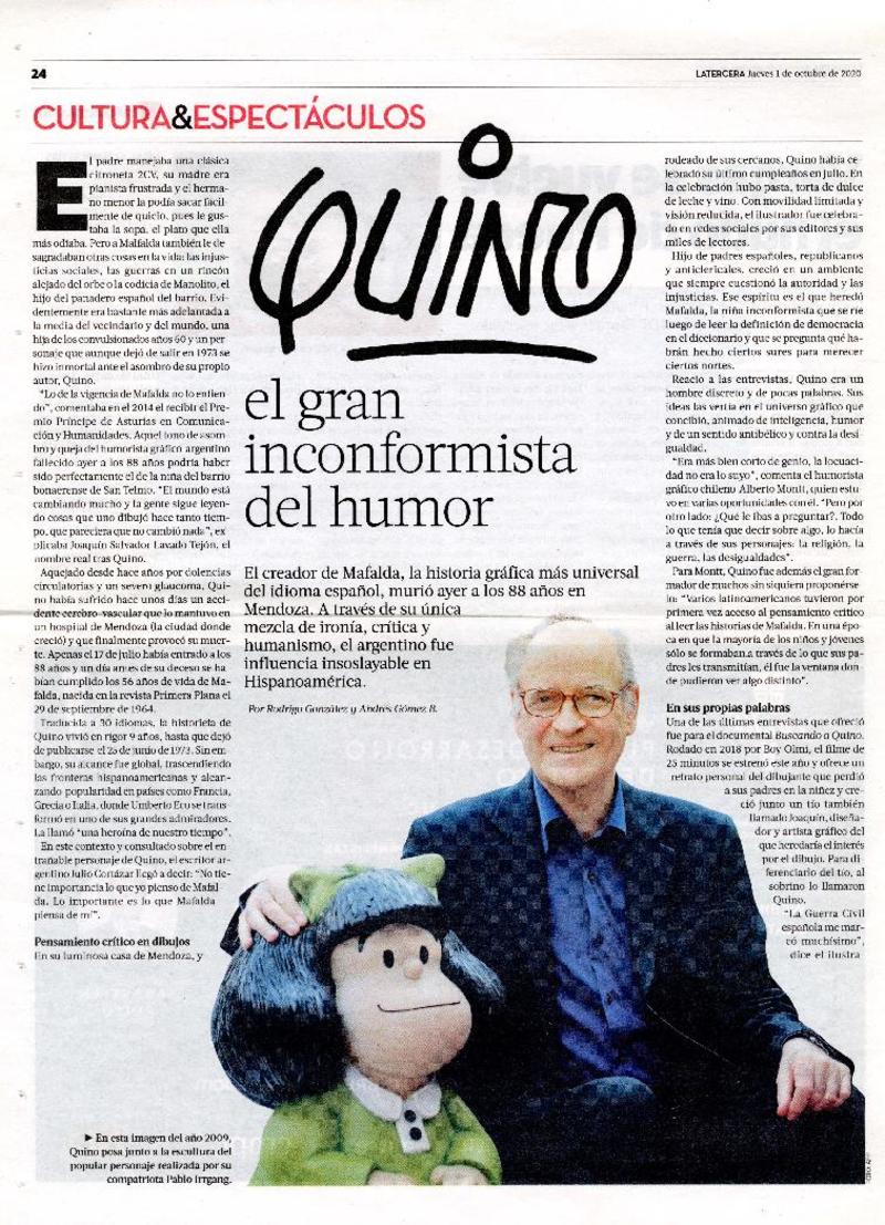 Quino : El gran inconformista del humor [artículo] Por Rodrigo González y Andrés Gómez B.