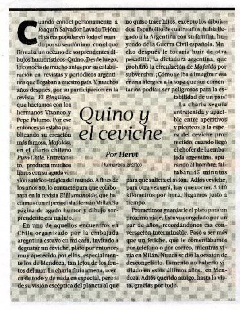 Quino y el ceviche [artículo] Por Hervi.