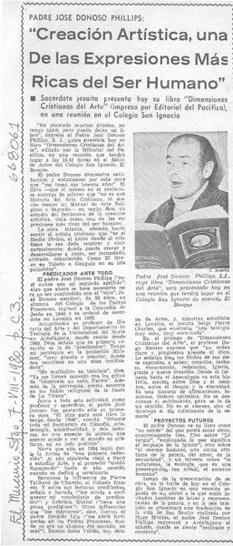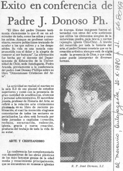 Padre José Donoso Ph. dictará conferencia [artículo]