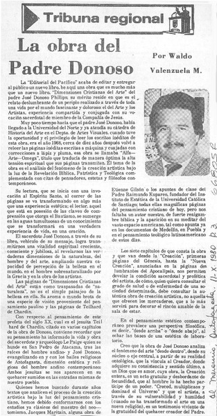 La obra del Padre Donoso [artículo] Waldo Valenzuela M.