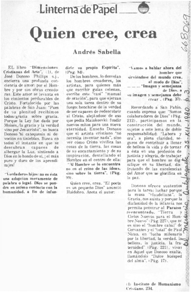 Quien cree, crea [artículo] Andrés Sabella.