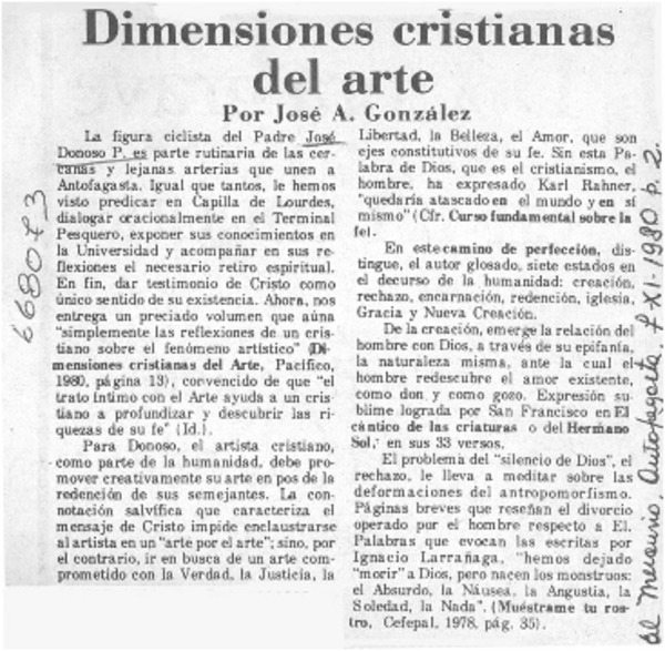 Dimensiones cristianas del arte [artículo] José A. González.