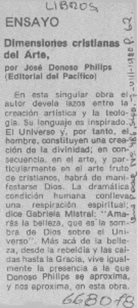 Autores chilenos - Donoso Phillips, José - Dimensiones cristianas del arte