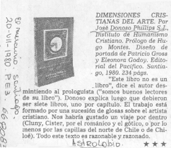 Autores chilenos - Dimensiones cristianas del arte - Donoso Phillips, José