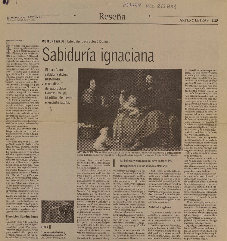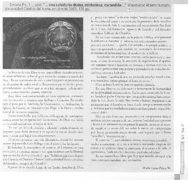 Donoso Ph., S.J., José "...una sabiduría divina, misteriosa, escondida" [artículo]María Luisa Pérez W.