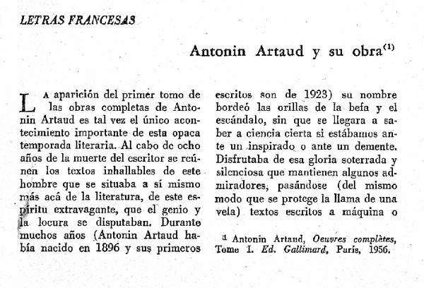 Antonin Artaud y su obra [artículo] Felix Gattegno.