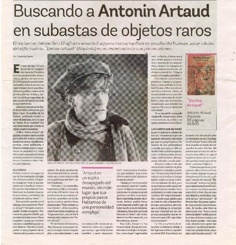 Buscando a Antonin Artaud en subastas de objetos raros [artículo] Por Cristóbal Gaete.